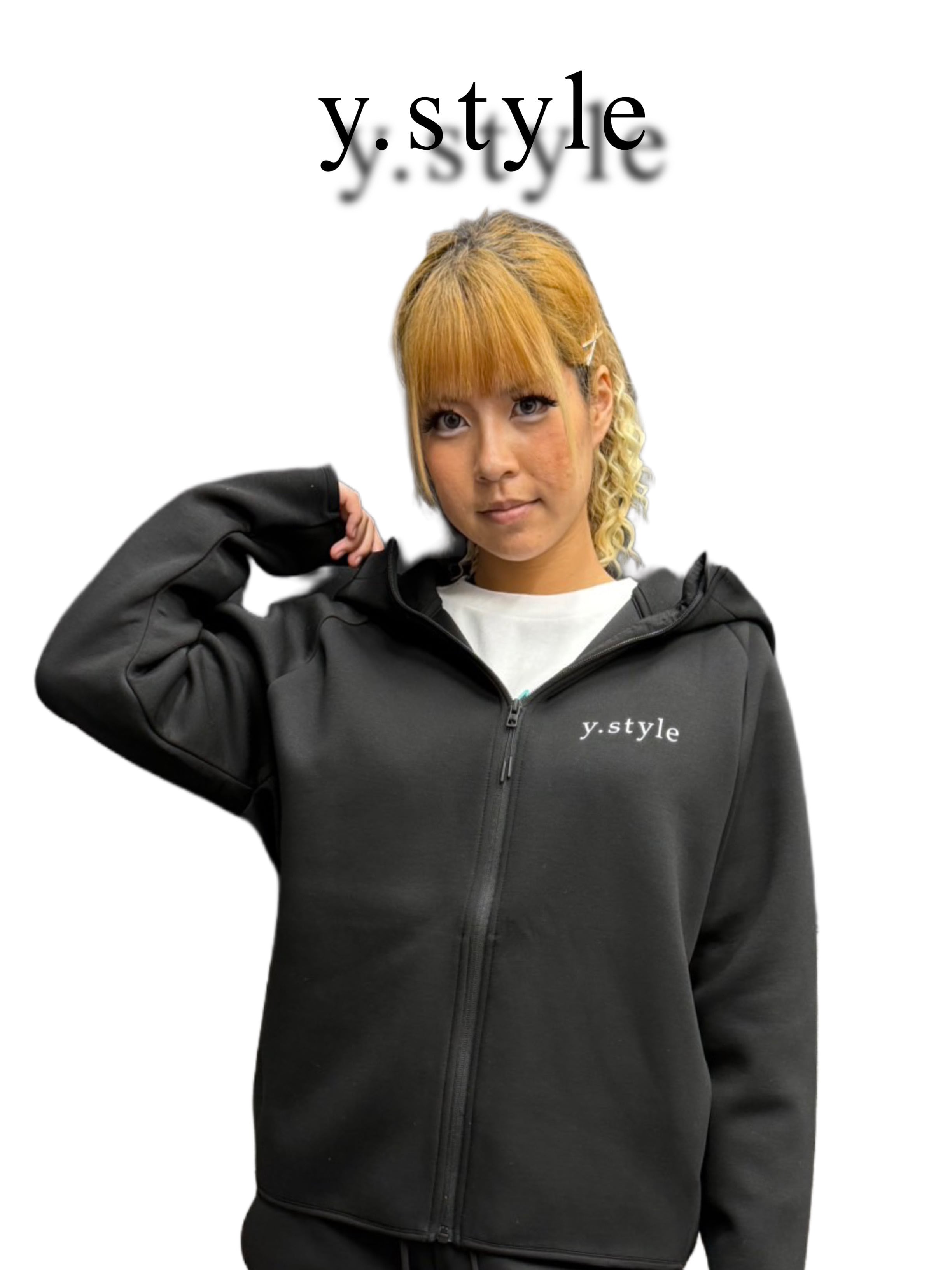 さらっと着れるy.styleロゴ入りのパーカーです。